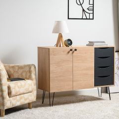 Лаконичный и стильный комод Брюс на высоких металлических опорах будет уместен в интерьере современной гостиной, спальни, прихожей.