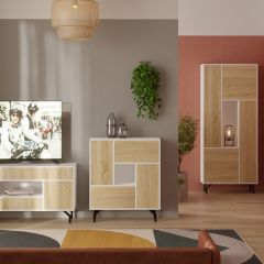 Кэт-4 Тумба 2 ящ (МДФ Бодега белая/Экокожа Caiman белый)