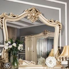 Мебель для спальни «Джоконда» не отличается прямыми линиями, здесь все очертания имеют криволинейные формы, преобладает архитектурный декор со сложными спиралями и витыми колоннами. Это дворцовый стиль, который использовали люди высшего класса в своих домах.