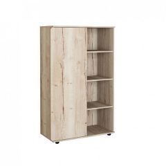 Комбинированный шкаф 13 из коллекции "Дельта Лофт" содержит секцию с открытыми полками и закрытую секцию с полками.