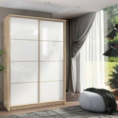 Вместительный шкаф с перегородкой. Одна секция шкафа представляет собой отдел с полками, а во второй расположена выдвижная штанга под одежду.
